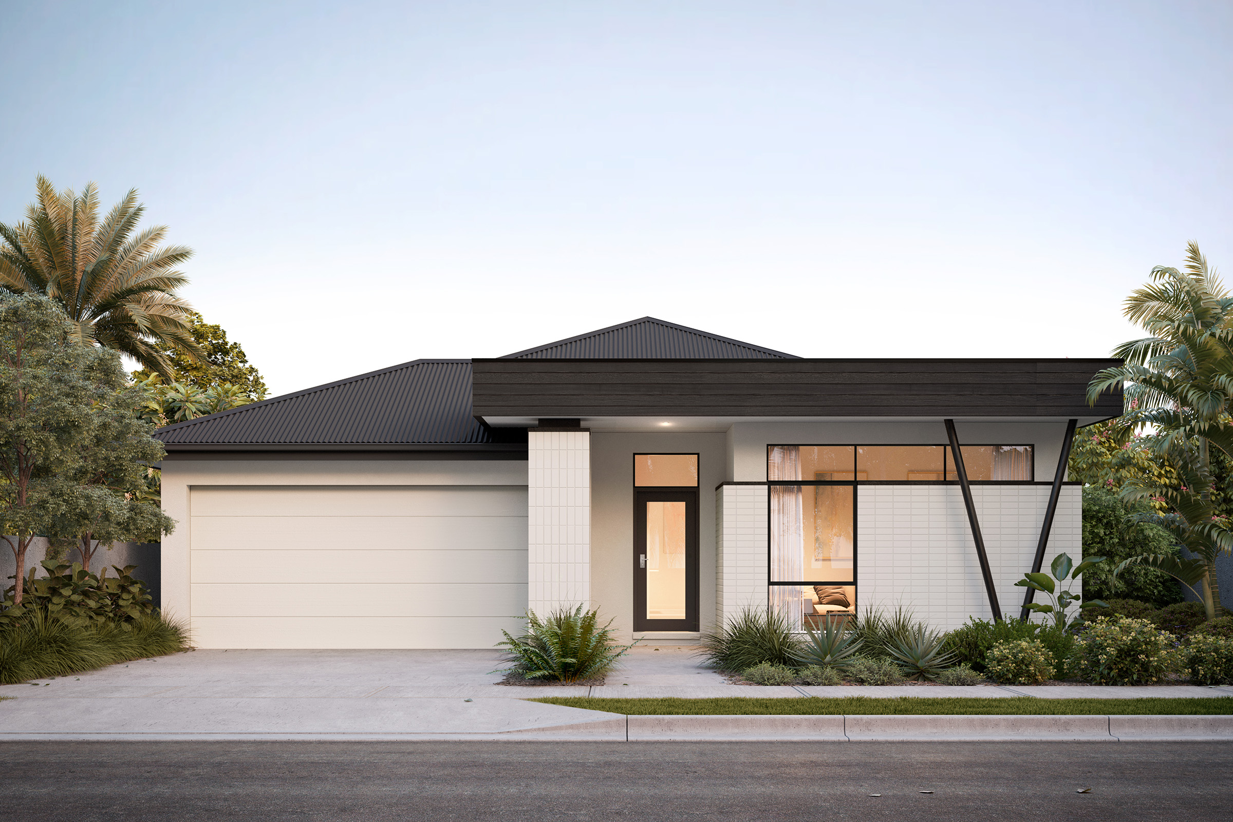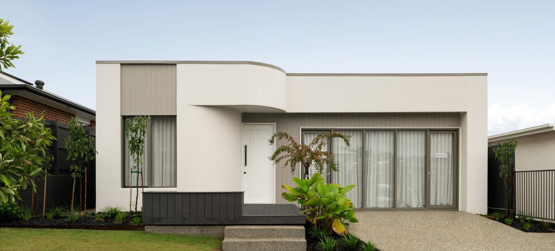 This refined palette creates a striking visual impact, emphasising clean lines and contrasting black and white tones. The result is a visually captivating exterior that exudes a modern charm with visual depth.
