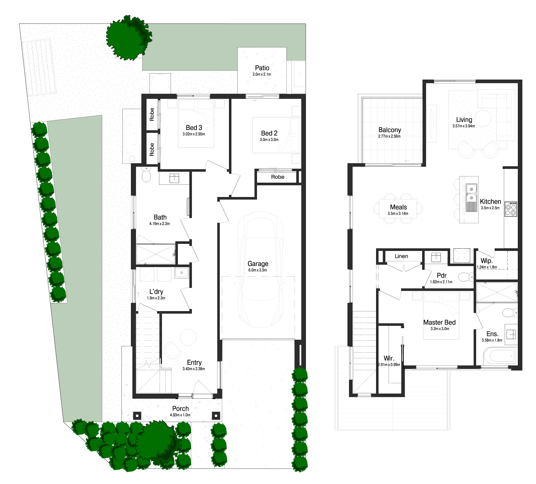 features a spacious walk-in robe and ensuite, while a separate powder room adds convenience for guests. This floorplan balances comfort, privacy and modern style in a meticulously