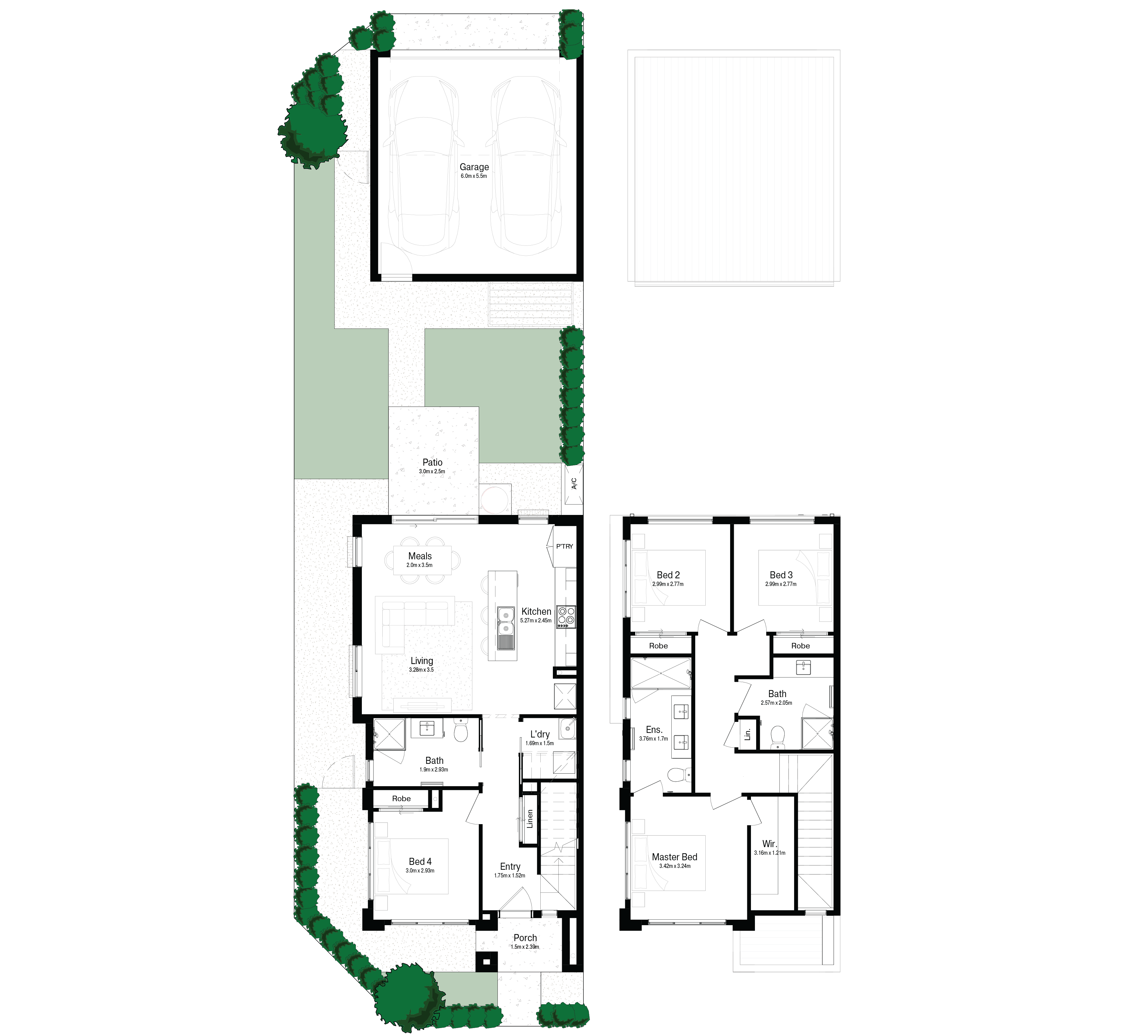 The Arbour is an expansive floorplan designed to comfortably accommodate families of any size. With an emphasis on open-plan living, this home is generous with both light and space. A sleek kitchen with an island seamlessly connects to the living and dining area, which opens onto a tranquil patio and backyard. The first floor is home to the master bedroom, featuring a walk-in robe and a private ensuite. Two additional bedrooms with built-in robes share a separate bathroom, creating a peaceful retreat. On the ground floor, a fourth bedroom with a built-in robe offers flexibility, perfect for guests, a home office or multigenerational living. A separate laundry, linen cupboard and double garage complete the design, adding practicality to everyday living.